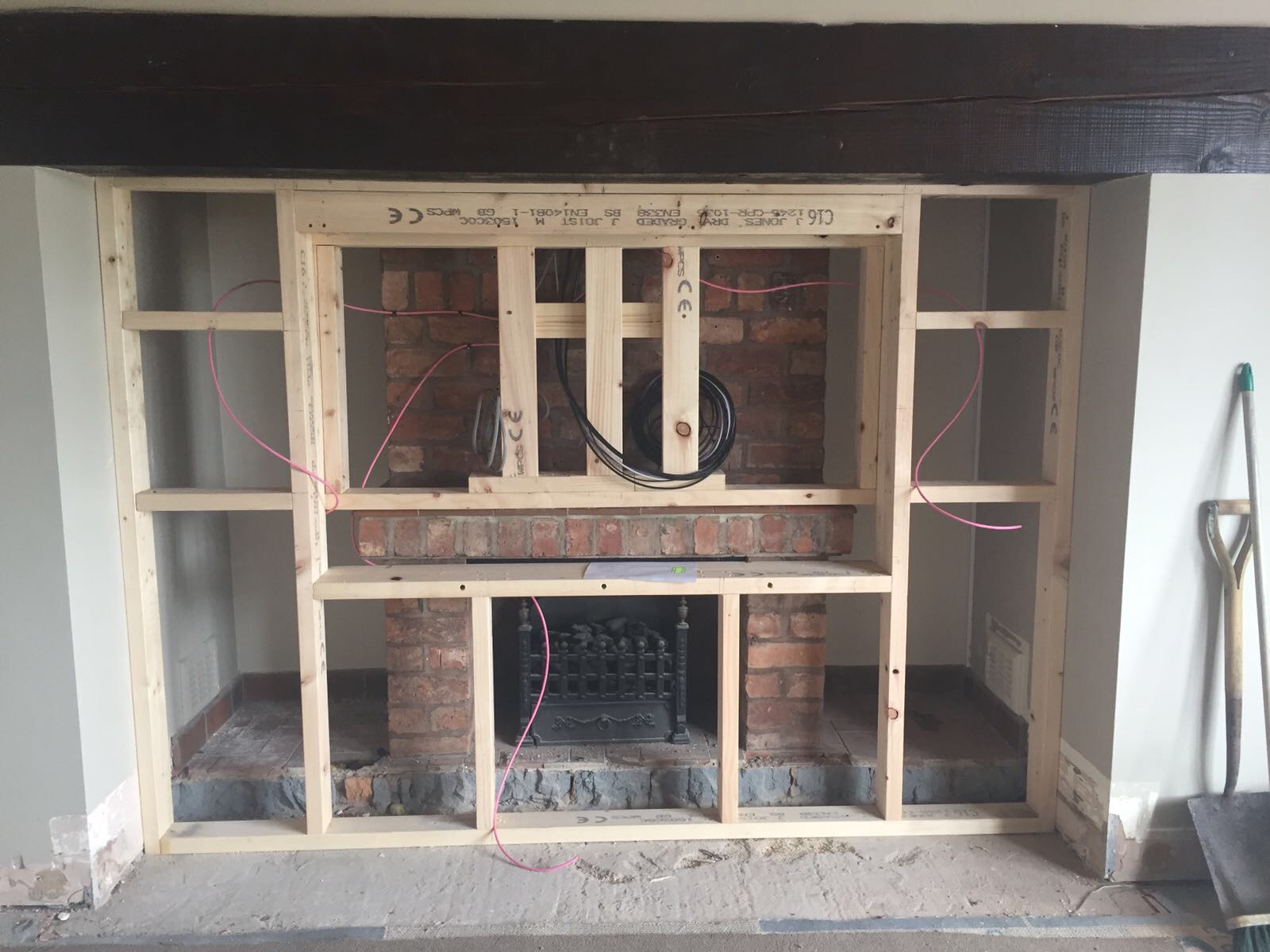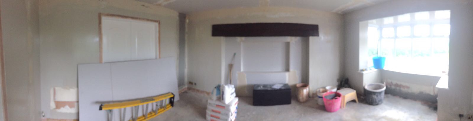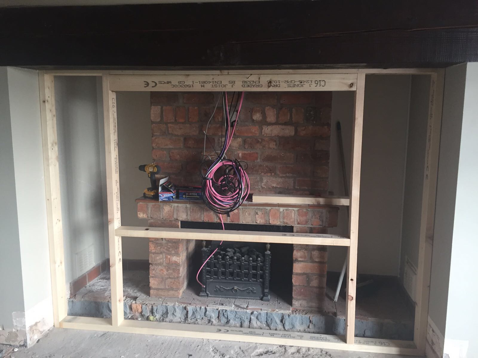 Followed by carpenter installting all timber frame for fire place recess tv, then plasterer.